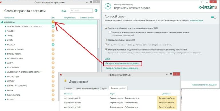 Для того, чтобы настроить режим, при котором можно производить обучение сетевого экрана: 1) Отключите интерактивный режим (главное окно — настройка — снимите галочку «Автоматически выполнять…» 2) Настройте сетевые права на группу «Доверенные» — запросить действие. Слабым ограничениям можно поставить «Запретить». 3) В группе «Доверенные» точечно дайте доступ в сеть подгруппам Microsoft, Opera, Kaspersky Lab и … Читать далее Как обучать сетевой экран Касперского?